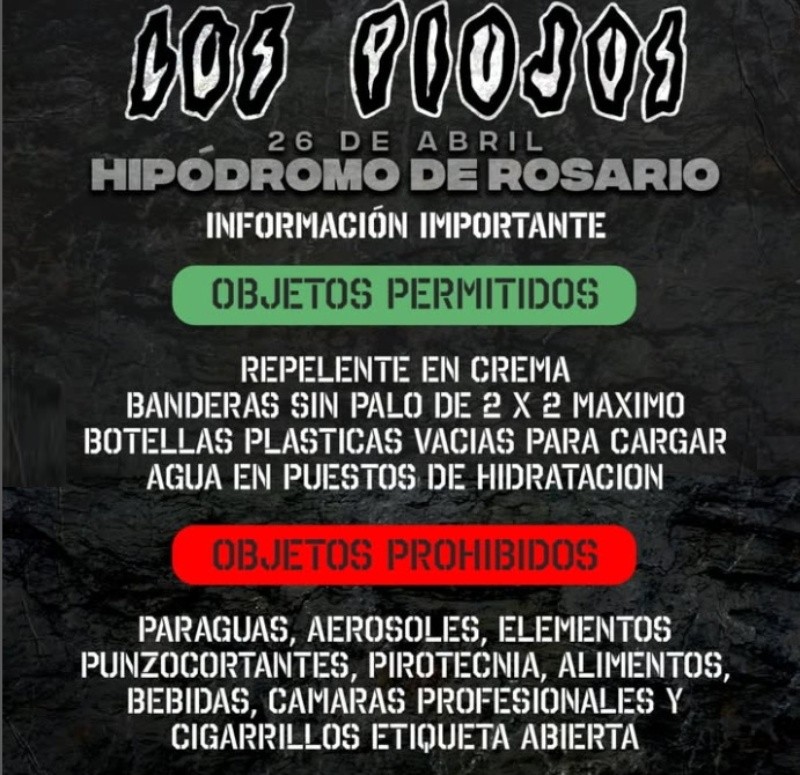 Desde la producción se informó que las puertas del predio se abrirán a las 17, y que los ingresos habilitados son los de Pellegrini y Pueyrredón, por avenida Lassaga, y el de bulevar Oroño y Ponce.