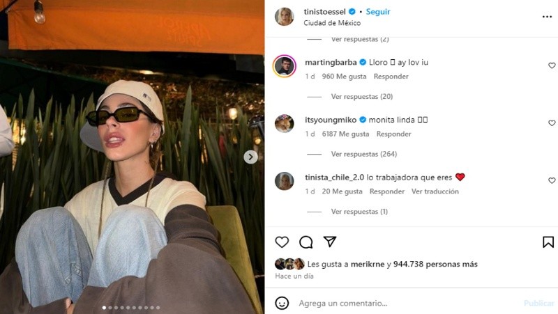 Tini Stoessel publicó en su cuenta de Instagram varias fotos de su viaje a México, incluyendo una imagen que mostraba su apariencia al despertar. Según publicó El Trece, en medio de esta publicación, Young Miko escribió: “Monita linda” a lo que Tini respondió rápidamente: “Vos preciosa”.