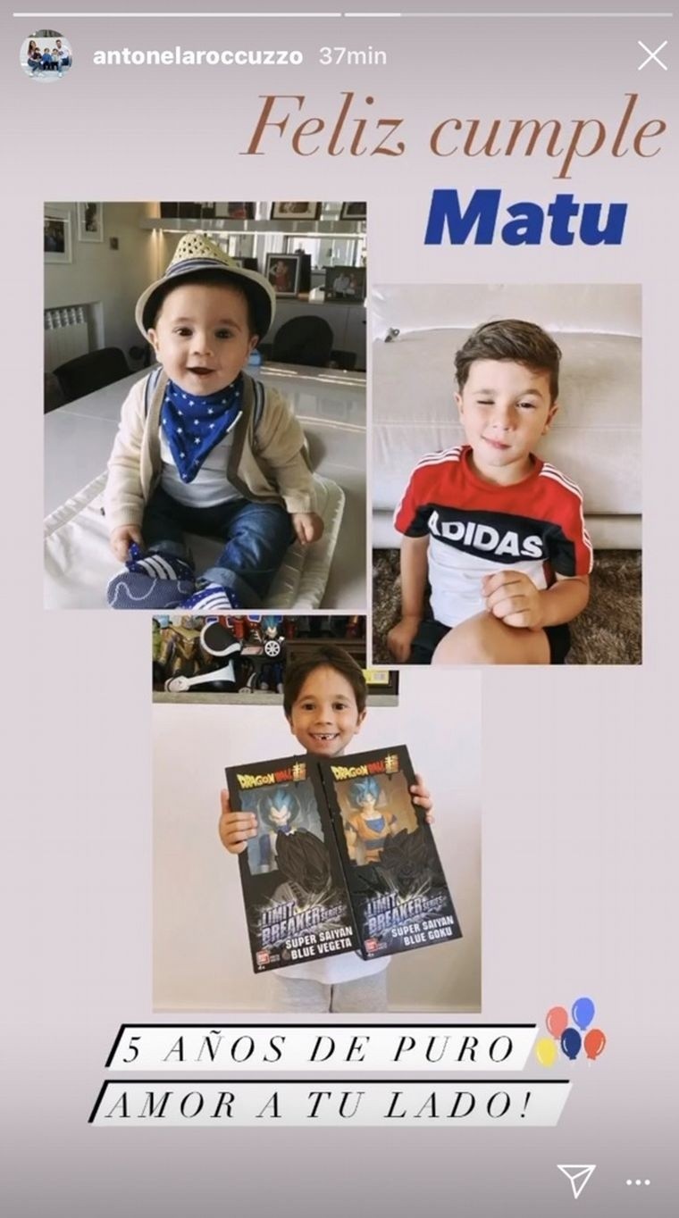 Mateo Messi cumple cinco años este viernes y su madre, Antonela Roccuzzo, compartió en sus historias de Instagram unas fotos con el segundo de sus hijos.