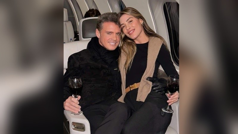 Al cantante mexicano se lo ve con una gran sonrisa en el rostro y una copa de vino en la mano mientras abraza a Michelle sentada arriba suyo.