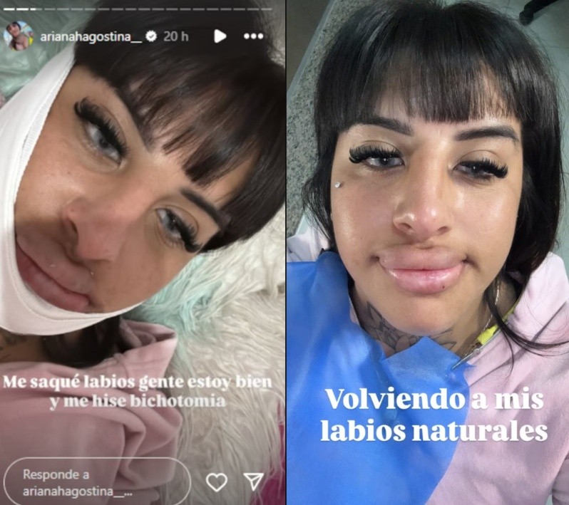 “Me saqué labios, gente. Estoy bien. Y me hice la bichectomía”, continúa para, horas después, mostrar los primeros resultados. “Me saqué la venda para comer y veo mis labios naturales”, se lee en la publicación.