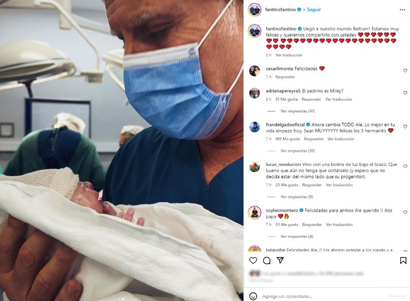"¡¡Llegó a nuestro mundo Beltran!! Estamos muy felices y queremos compartirlo con ustedes", anunció Fantino en Instagram. Al toque, la publicación se llenó de mensajes, felicidades y buenos deseos.