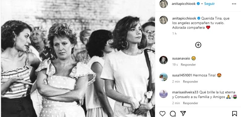 “Querida Tina, que los ángeles acompañen tu vuelo. Adorada compañera”, escribió Ana María Picchio en su cuenta de Instagram, junto a una imagen de la película "Chechechela, una chica de barrio", de 1986.