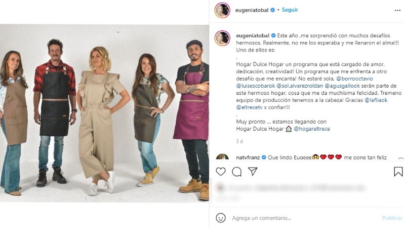 Con la confirmación de Eugenia Tobal como conductora, se aceleran los tiempos para el estreno del reality televisivo Hogar dulce hogar.