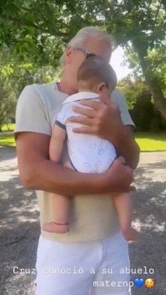Muy emocionada, Nicole posteó varias fotos en sus historias de Instagram, donde muestra a su padre haciéndole upa con enorme ternura a su nieto, y en el pie de la imagen tituló: “Cruz conoció a su abuelo materno”.