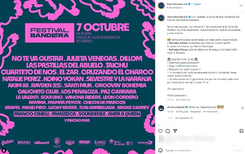 Este martes se confirmó la grilla de artistas que participarán de la cuarta edición del Festival Bandera que se desarrollará el sábado 7 de octubre desde las 14.30 en el Predio Ferial del Parque de la Independencia (ex Rural).