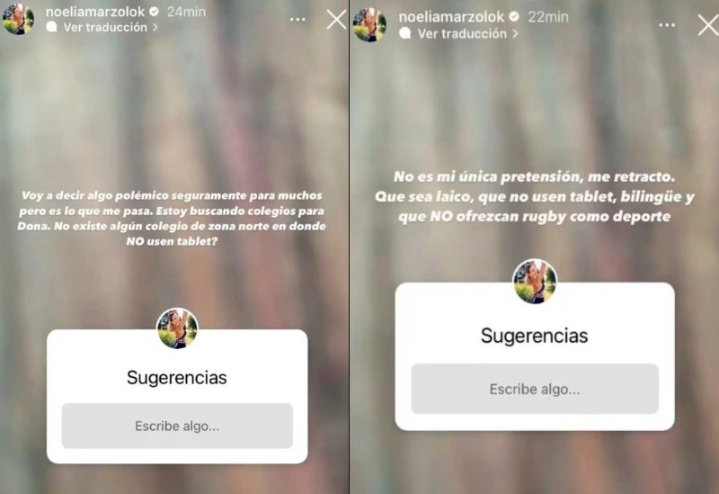 “Voy a decir algo polémico seguramente para muchos, pero es lo que me pasa. Estoy buscando colegios para Dona. ¿No existe algún colegio de zona norte en donde no usen tablet?”, preguntó Noelia, a través de una encuesta en sus stories de Instagram.