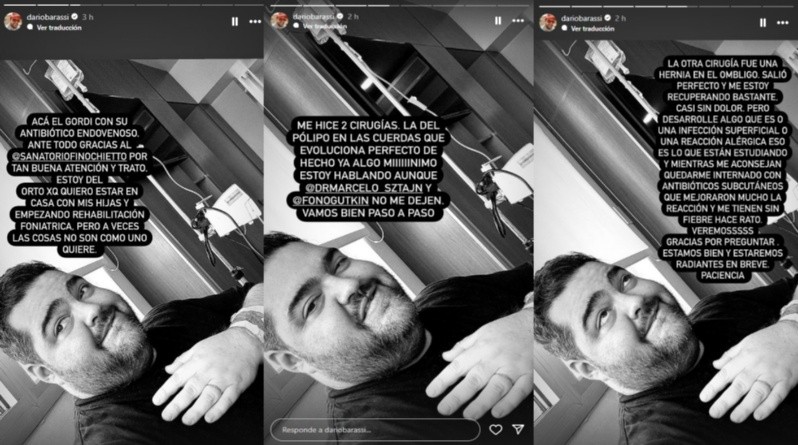 El presentador y comediante Darío Barassi volvió a ser internado en las últimas horas, tras ser operado de un pólipo en las cuerdas vocales y de una hernia abdominal.