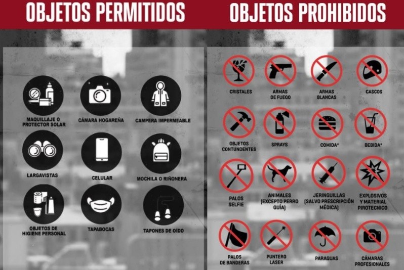 También se detallaron los objetos permitidos y los no permitidos al momento del ingreso del show.