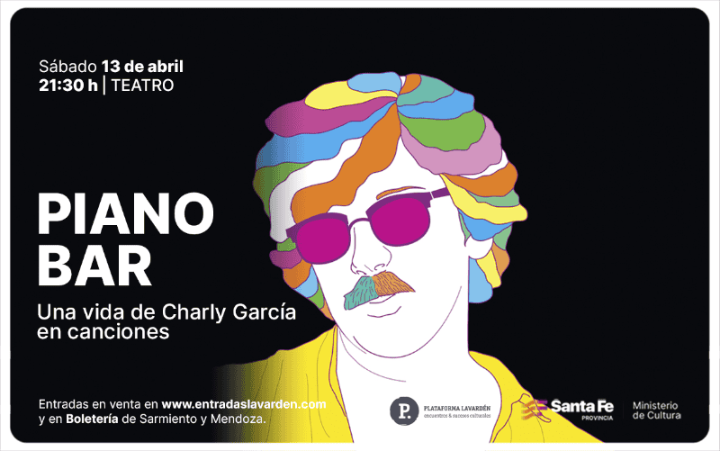 Piano bar, la banda local que celebra la vida y la música de Charly García, vuelve a la sala Lavardén el sábado 13 de abril para festejar los 40 años del disco que le dio su nombre. Las entradas están a la venta en boletería del teatro ubicado en Sarmiento y Mendoza y de manera online a través de la web.