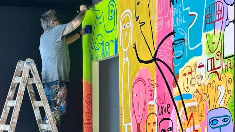 Las figuras de Milo, que hace 20 años enamoraron a Francis Ford Coppola, siempre contenidas por el filete negro, anticipan ahora en Salta al 2000 los colores que se verán en la medianera del edificio que comenzará a construirse el año que viene.