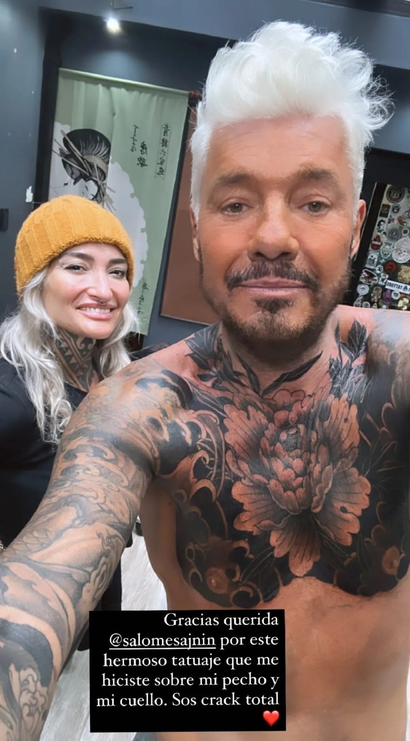 "Gracias querida Salome Sajnin por este hermoso tatuaje que me hiciste sobre mi pecho y cuello. Sos crack total", escribió.