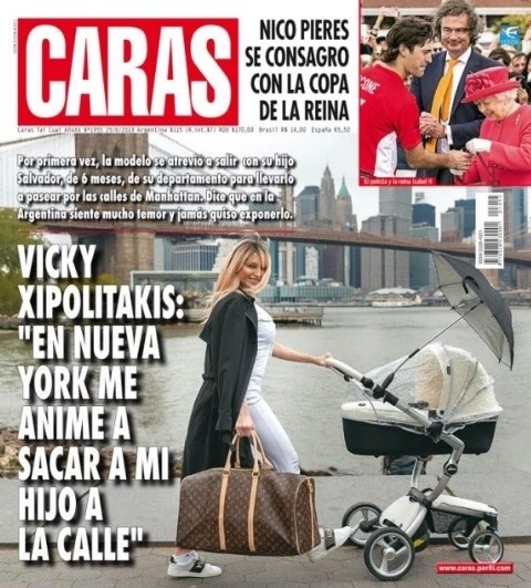 “En Nueva York me animé a sacar a mi hijo a la calle”, declaró Vicky. El textual está acompañado por una imagen de la ex vedette junto a su hijo Salvador Uriel, de seis meses, mientras pasean por la Gran Manzana.