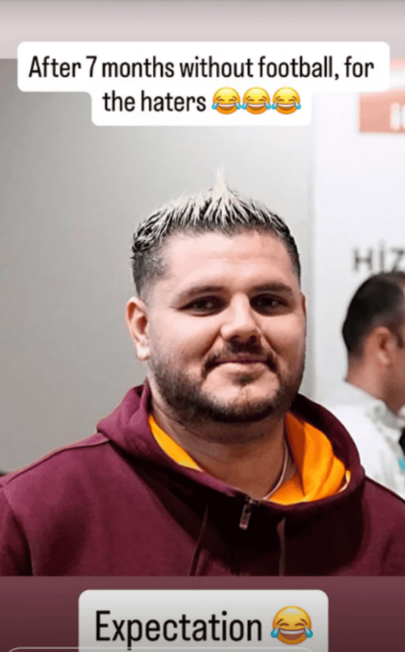 El futbolista que está en medio de la pretemporada del Galatasaray usó la ironía para hacerse eco de los comentarios periodiísticos y virtuales de aquellos que apuntan sobre su condición física para regresar a las canchas. “Después de 7 meses sin fútbol, para los haters... expectativa...”, escribió Icardi con un emoji de risas junto a una foto de su rostro ensanchada.