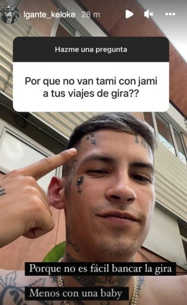 "¿Por qué Tami no va con Jami a tus viajes de gira?", le preguntaron a través de sus stories de Instagram a L-Gante.