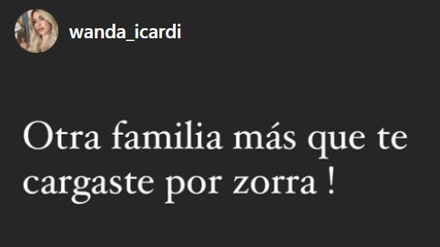 El escándalo se desató este mediodía, cuando Wanda interrumpió sus habituales posteos familiares y de publicidad con unas declaraciones explosivas . “Otra familia más que te cargaste por zorra” , disparó sin entrar en detalles.