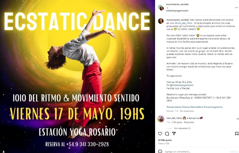 Esctatic Dance es un movimiento que viene en crecimiento alrededor de todo el mundo. Se trata una experiencia en de bailes que expanden y nutren. La invitación está abierta a todo el público, es que no hace falta "saber bailar", sino que, es un espacio para soltar cualquier expectativa, para entregarte a la propia danza y la música en vivo.