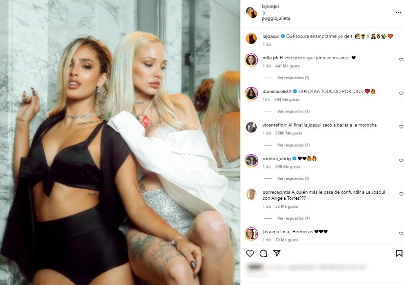 El último fin de semana, se conocieron algunas imágenes de la ex Gran Hermano Julieta Poggio y la cantante La Joaqui juntas, en lencería y en situaciones domésticas.