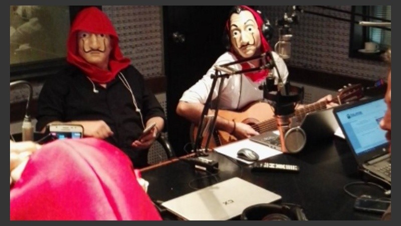 Las “caras” de los protagonistas de La Casa de Papel, la exitosa serie española que hace furor en Argentina, pasaron por Radiópolis, el programa de Roberto Caferra en Radio 2. Los ladrones recrearon un momento muy divertido que incluyó la interpretación en un solo de guitarra del tema “Bella Ciao”, la canción de la serie que despierta la pasión de sus fanáticos.