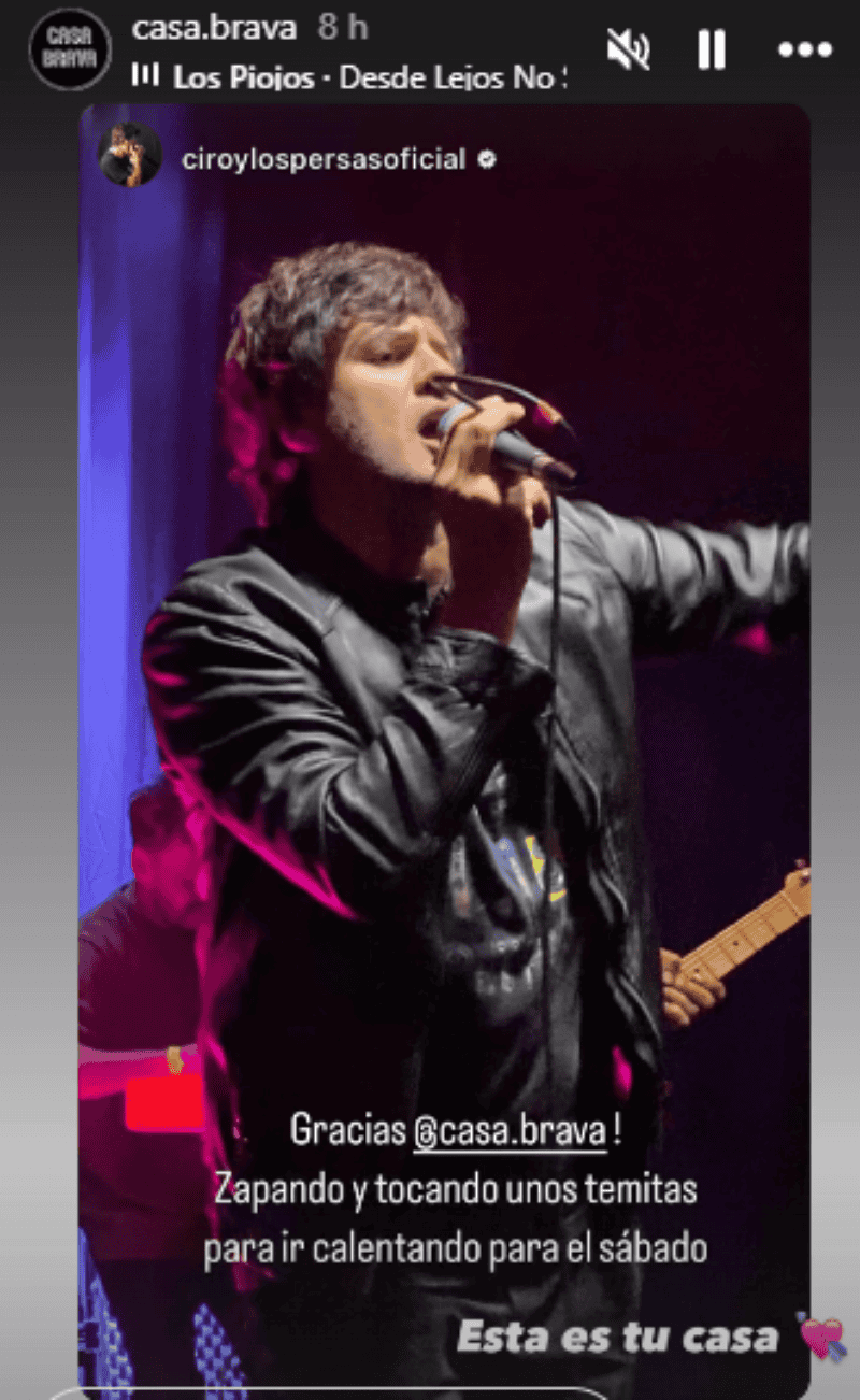 "Gracias, Casa Brava. Zapando y tocando unos temitas para ir calentando motores para el sábado", escribió en sus redes sociales el cantante.