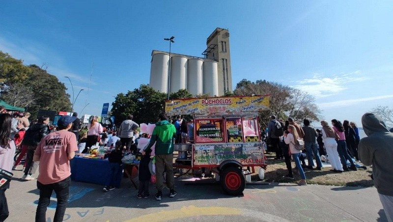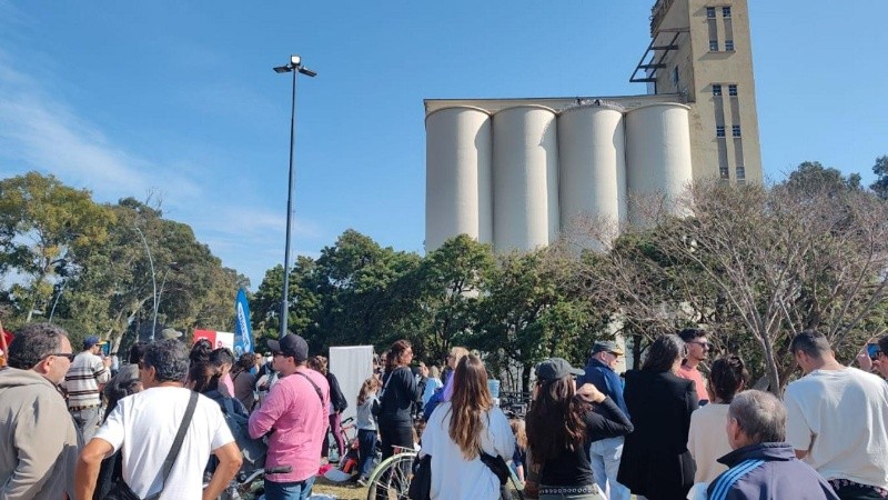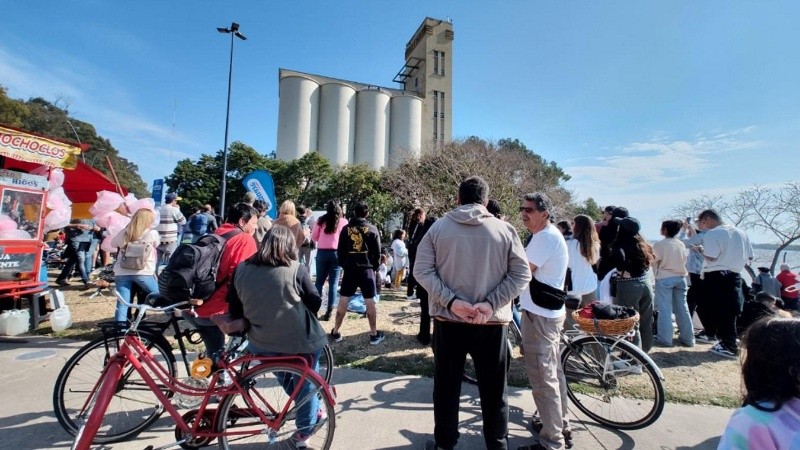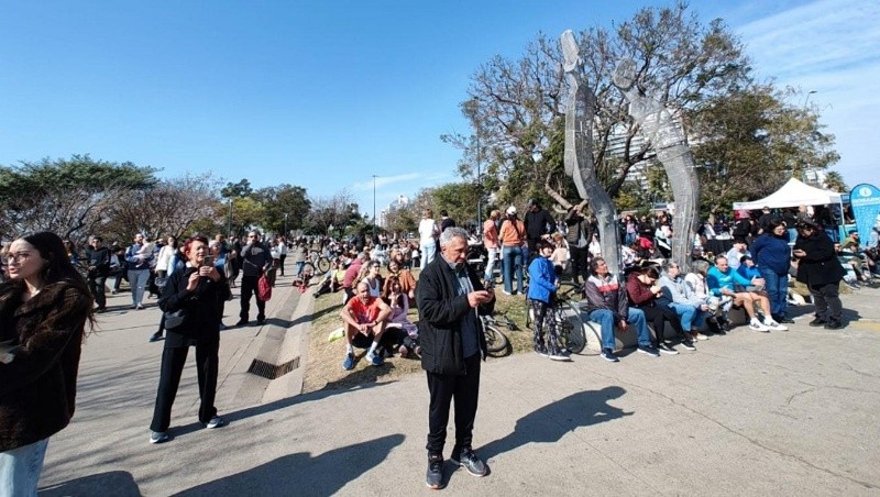 Decenas de rosarinas y rosarinos se acercaron al Macro este domingo para seguir de cerca los trabajos. la actividad contaba con música en vivo.