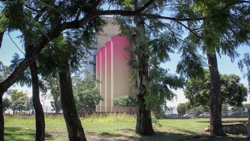 Una semana después de lo previsto, debido a la postergación por mal tiempo, este domingo comenzaron los trabajos de la nueva fachada del Museo de Arte Contemporáneo de Rosario (Macro). La obra creada por Florencia Meucci y Manuel Cuccurell, titulada “Paint's not Dead”, propone una nueva intervención en los silos de bulevar Oroño y el río que, de ahora en adelante, lucirán de color rosa.