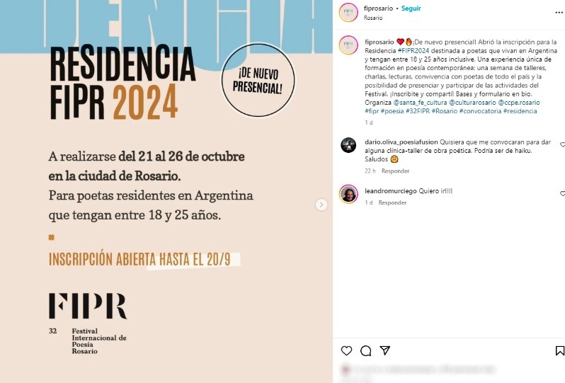 A la par de la grilla de actividades antes mencionada, el FIPR desarrolla propuestas formativas como la Residencia para poetas jóvenes, que en esta edición, será nuevamente presencial.