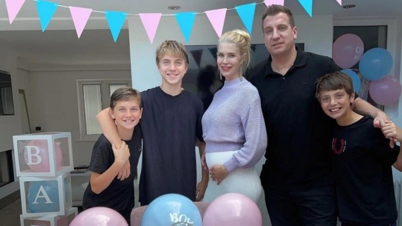 El exfutbolista y su novia compartieron una foto junto a los hijos de Maxi y un video del momento donde descubren la noticia.
