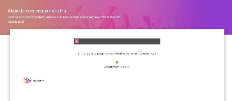 El sitio web All Access, encargado de la venta de las entradas para los tres recitales de Taylor Swift, volvió a habilitar la opción para adquirir tickets para los shows de la cantante y hay fila virtual para conseguir un lugar.