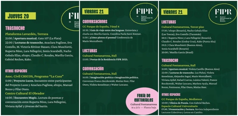 La programación de la FIPR puede consultarse en la web del Ministerio de Cultura de Santa y en el sitio de la Municipalidad de Rosario/Secretaría de Cultura. También en la cuenta de Instagram del festival (@fiprosario).
