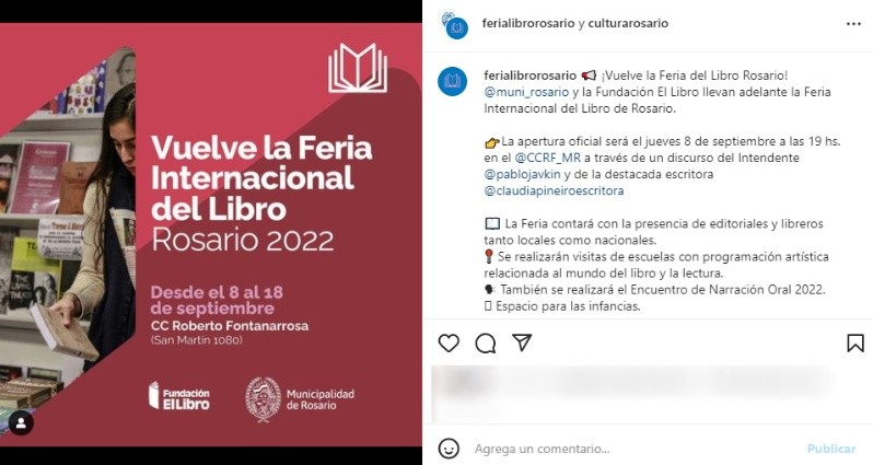 Organizada por la Municipalidad de Rosario y la Fundación El Libro, del 8 al 18 de septiembre en el Centro Cultural Roberto Fontanarrosa (San Martín y San Juan) se desarrollará la 24ª Feria Internacional del Libro de Rosario que este 2022 vuelve a ser presencial tras la pandemia, con entrada libre y gratuita.