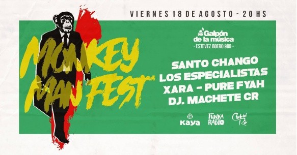 Lor organizadores de Monkey Man señalaron que el objetivo de la movida es constituirse en festival itinerante con sello rosarino que fusione la cultura y el arte, siendo la música una de sus formas. Así, en el debut del festival se podrá disfrutar de cuatro bandas de la ciudad: Santo Chango, Los Especialistas, XARA y PureFyah Reggae que harán vibrar el salón al ritmo jamaica style.