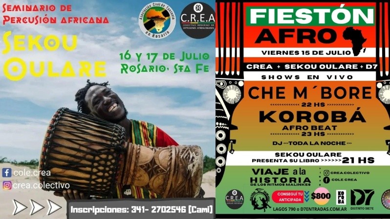 La propuesta comienza el viernes 15, con una fiesta en Distrito 7 (Ovidio Lagos 790). A las 21, Sekou Oulare presentará el libro, después seguirá el Ensamble Che M´bore (grupo de percusión, danza y canto afroguineano de Rosario) y cerrará la noche temática Korobá, grupo de Afro Beat de Buenos Aires, en el cual Sekou también forma parte.