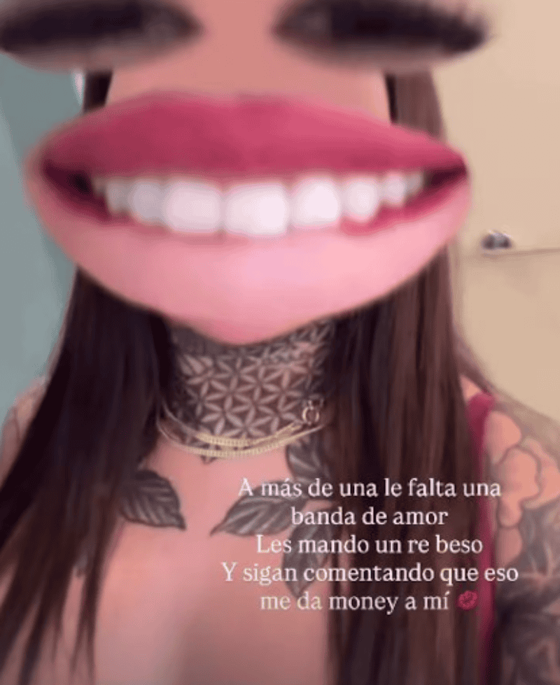 “A más de una le falta una banda de amor. Les mando un re beso y sigan comentando que eso me da money a mí”, lanzó en un video junto a un emojo de beso y haciendo mención que esos comentarios de haters le generan interacciones en su perfil.