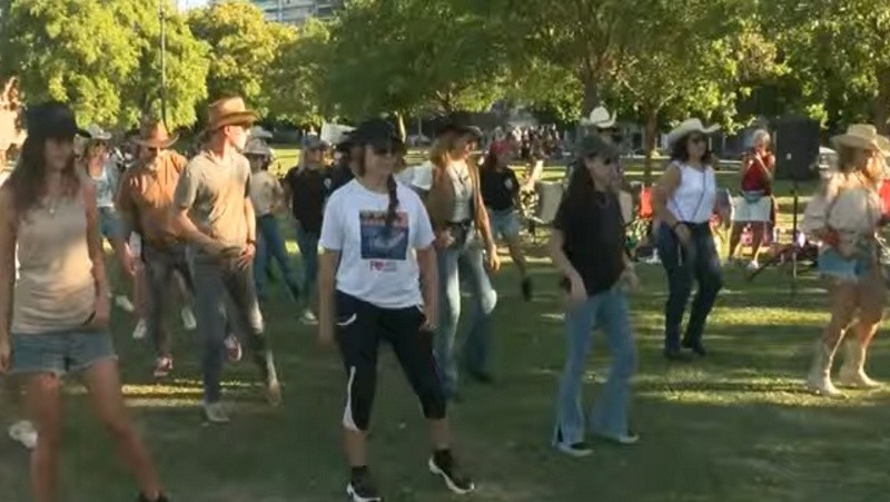 Sombrero de ala ancha atado a la barbilla, botas con flecos y punta metalizada al tono. El típico conjunto vaquero, muy utilizado en el western norteamericano e imprescindible para los bailarines de country, fue parte fundamental del outfit de las decenas de personas que se reunieron este fin de semana frente al río en Rosario.