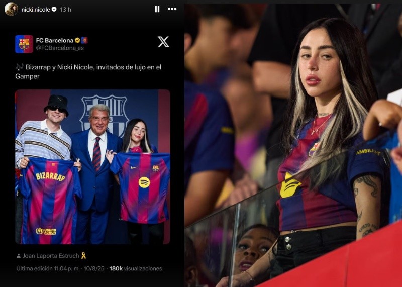 El último sábado, Nicki Nicole fue vista en el Estadio Johan Cruyff para presenciar el partido del Trofeu Joan Gamper, donde el FC Barcelona se impuso 5-0 al Como, con dos goles de Yamal.