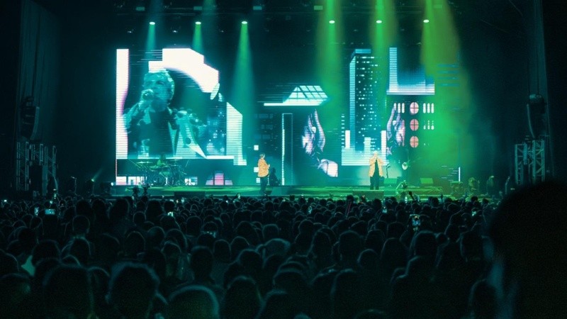 “Ritmo y decepción”, “Siempre que lo beso” y” Dice lo que siente”, las tres primeras, anticipaban una noche en la que hubo música y también baile: una gran fiesta pop. Con audiovisuales atrapantes y coreografías, la puesta en escena y la estética dieron cuenta del presente del dúo que llegó a la ciudad en el marco de la gira Nuevo Hotel Miranda.