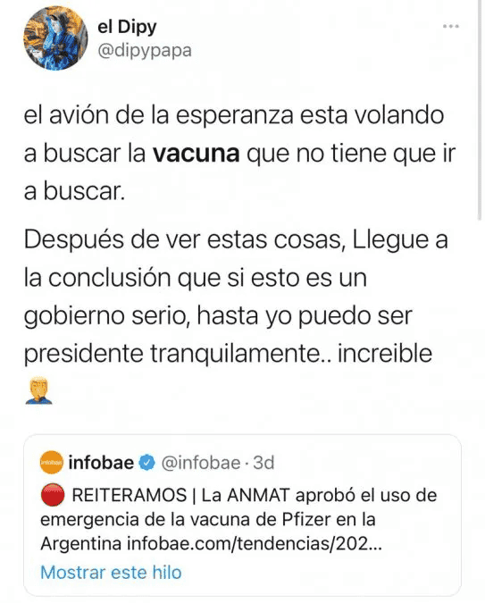 El Dipy volvió a generar escándalos en las redes sociales tras repudiar a la vacuna rusa. En medio del contexto donde un avión llegaba de Rusia con la vacuna Sputnik V, el cantante de cumbia se indignó y atacó nuevamente a las decisiones estatales.