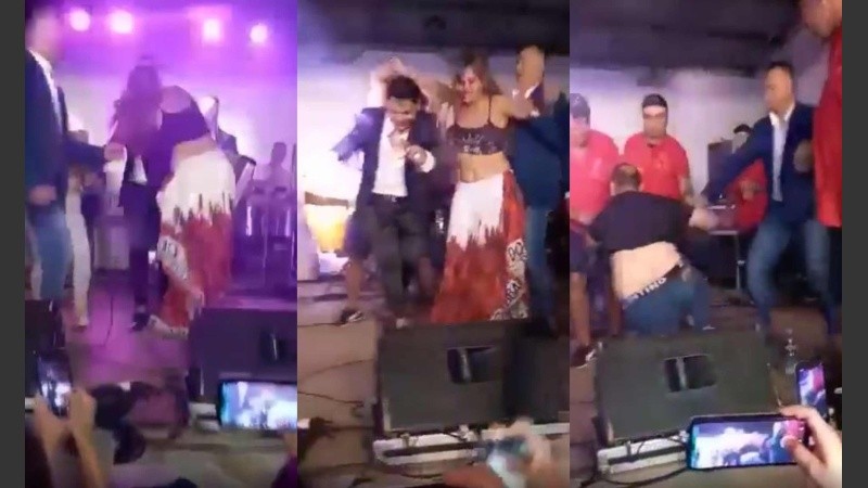 El hecho ocurrió en Entre Ríos, en el club Talleres de la localidad Federal. Todo se desató cuando una de las fanáticas trepó al escenario para saludar al intérprete. Por lo que se ve en imágenes, ella no se incomodó, intentó besarlo y su pareja se enojó y también se subió pero a pelear.