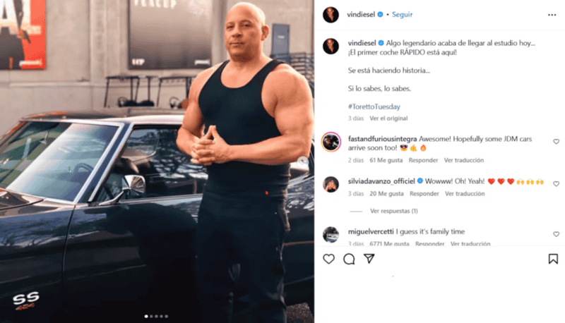 “Algo legendario acaba de llegar al estudio hoy... ¡El primer coche está aquí! Se está haciendo historia... Si lo sabes, lo sabes”, escribió Vin Diesel en la descripción de la publicación.