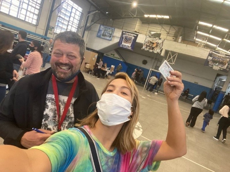 Flor Vigna fue a votar bien colorida junto a Miguel, su papá.