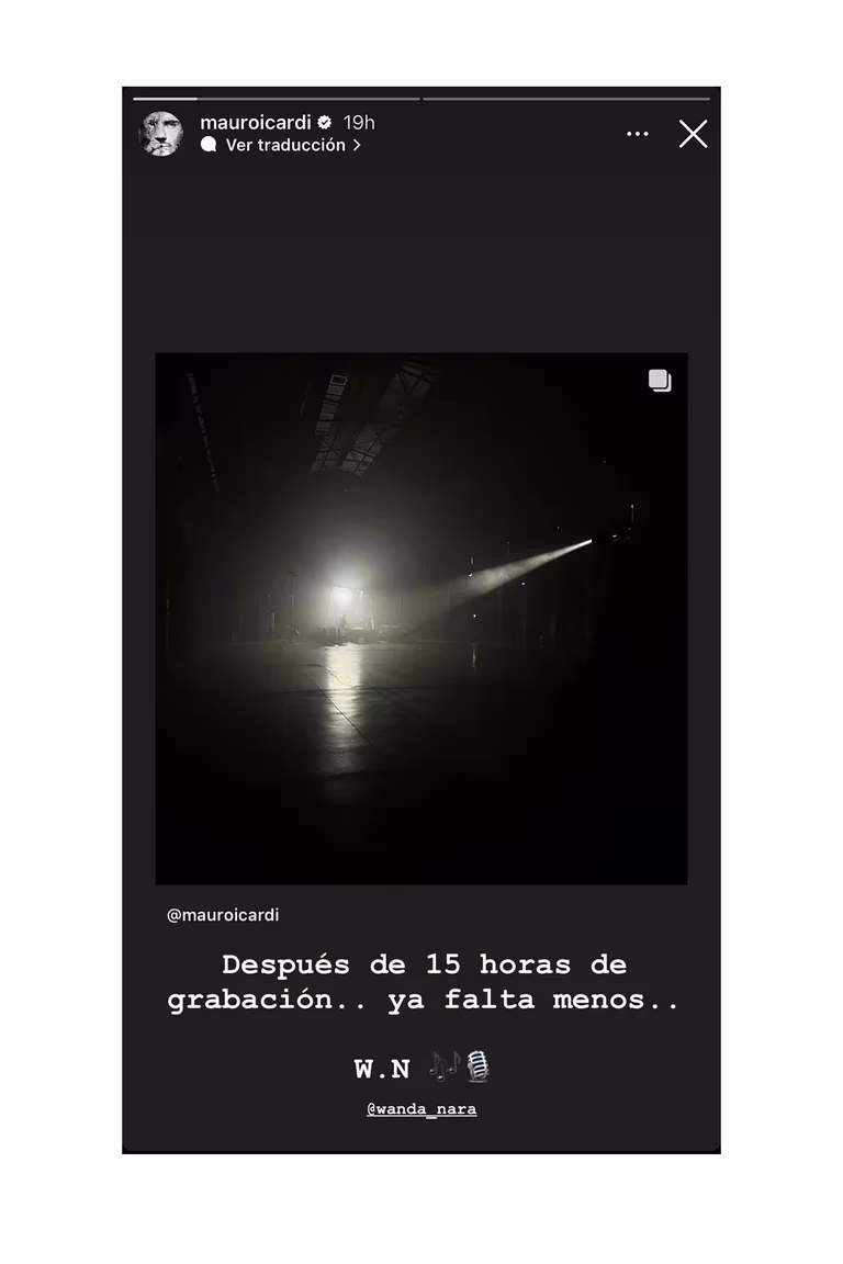 Acto seguido, a través de sus historias de Instagram, Icardi escribió: “Después de 15 horas de grabación... ya falta menos…” y agregó emojis de notas musicales y un micrófono.