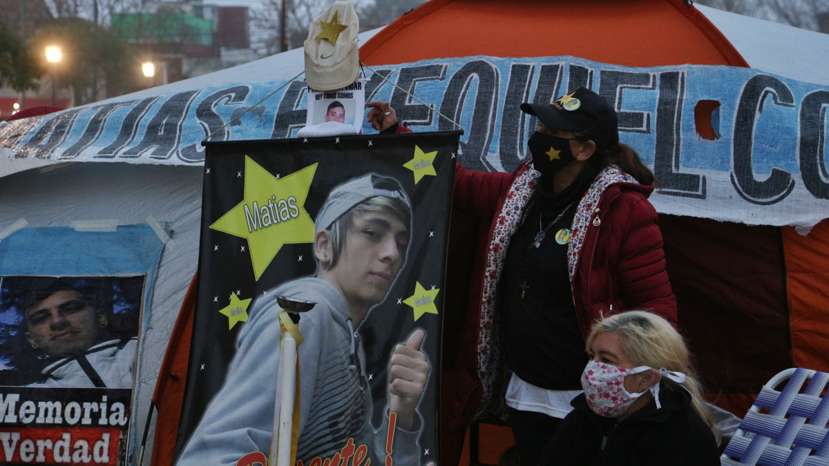 Elsa montó una carpa frente al Centro de Justicia Penal de Rosario para seguir de cerca y visibilizar el juicio que se lleva a cabo por la muerte de su hijo, Matías Exequiel Córdoba en un siniestro vial, por el que está acusado un joven. El hecho ocurrió en Ovidio Lagos e Hilario de la Quintana.