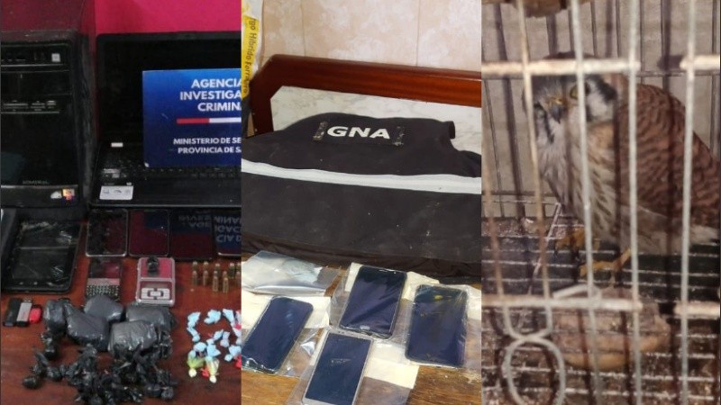 Siete allanamientos se llevaron a cabo este jueves en el marco de una causa por balaceras. Varias personas fueron demoradas y detenidas por la Agencia de Investigación Criminal (AIC). Se secuestraron drogas, dinero en efectivo, material informático, armas, un chaleco de Gendarmería y hasta un halcón.