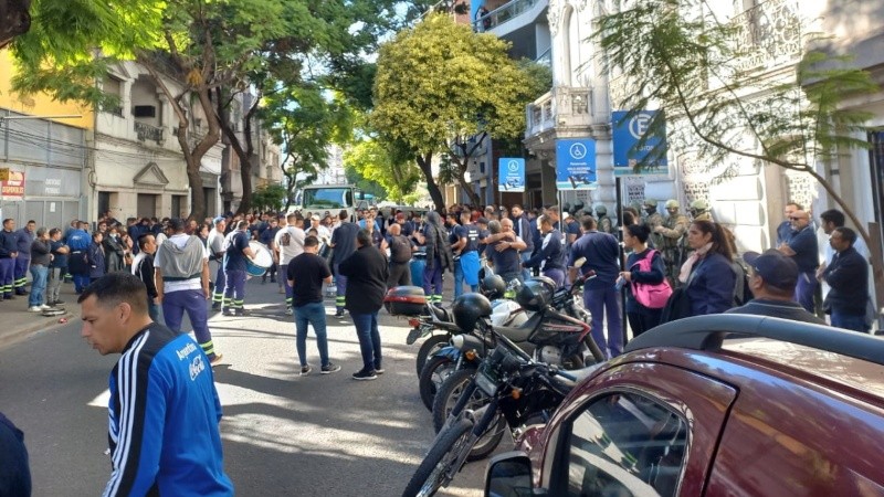 Al momento de llegar las TOE al sindicato, en el interior del edificio había dos representantes gremiales que permanecieron allí, en tanto que a partir de las 8 comenzaron a arribar distintos representantes de la comisión directiva.