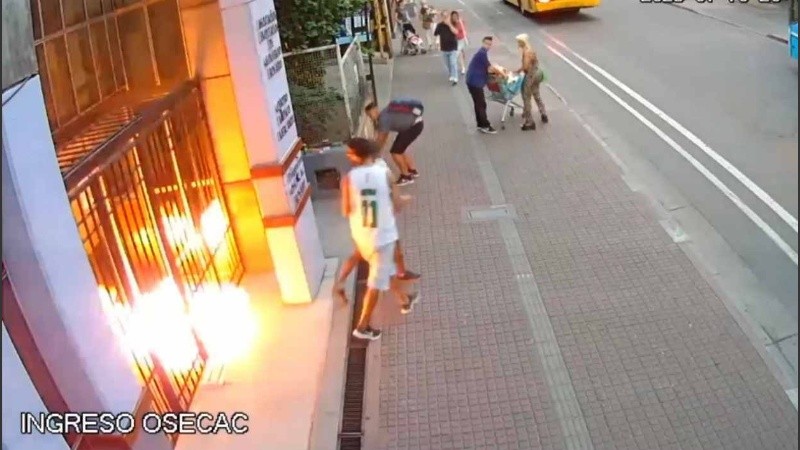Según Schiappa Pietra, Benítez fue la persona que quedó filmada el lunes de la semana pasada, cuando prendió fuego la sede de Osecac de Corrientes al 400 frente a transeúntes, automovilistas y pasajeros de dos colectivos. El ataque incendiario, como pudo apreciarse en las imágenes, lo ejecutó con un cómplice, que fue quien primero arrojó el líquido combustible contra la fachada del edificio.