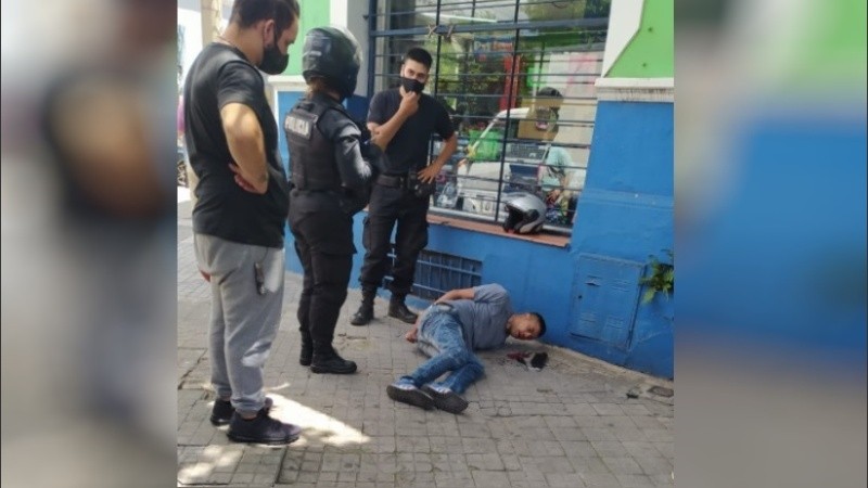 Un transeúnte grabó la escena final, con la presencia de los efectivos policiales y el delincuente tendido en la vereda.