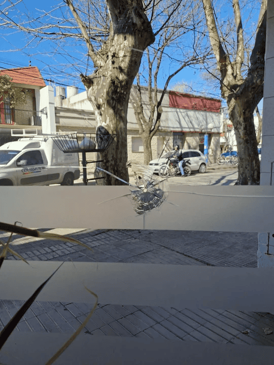 En las imágenes se observa a un joven correr desesperadamente mientras huye de otros dos varones. Uno de ellos desenfunda un arma y apunta contra el perseguido, pero el disparo impacta en el blíndex de un local perteneciente a un proveedor de telefonía e internet, según confirmaron luego los propietarios del comercio.