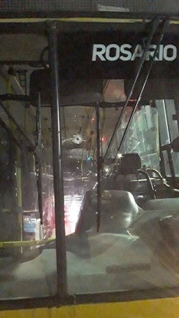 Un colectivo de la empresa Rosario Bus fue baleado este lunes a la noche en avenida San Martín a la altura del puente del arroyo Saladillo.