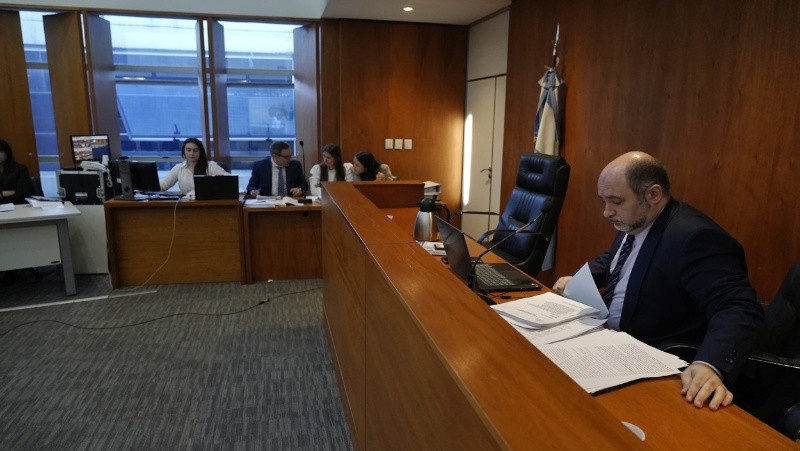 Ningún imputado estaba en la sala este martes. Todos participan por videoconferencia para evitar traslados por seguridad. Se estima que la audiencia hoy se extienda hasta las 14 y este miércoles se reanude de 14 a 19.30. Según la información disponible en la Oficina de Gestión Judicial, la audiencia estará a cargo del juez penal de primera instancia Gustavo Pérez Urrechu.